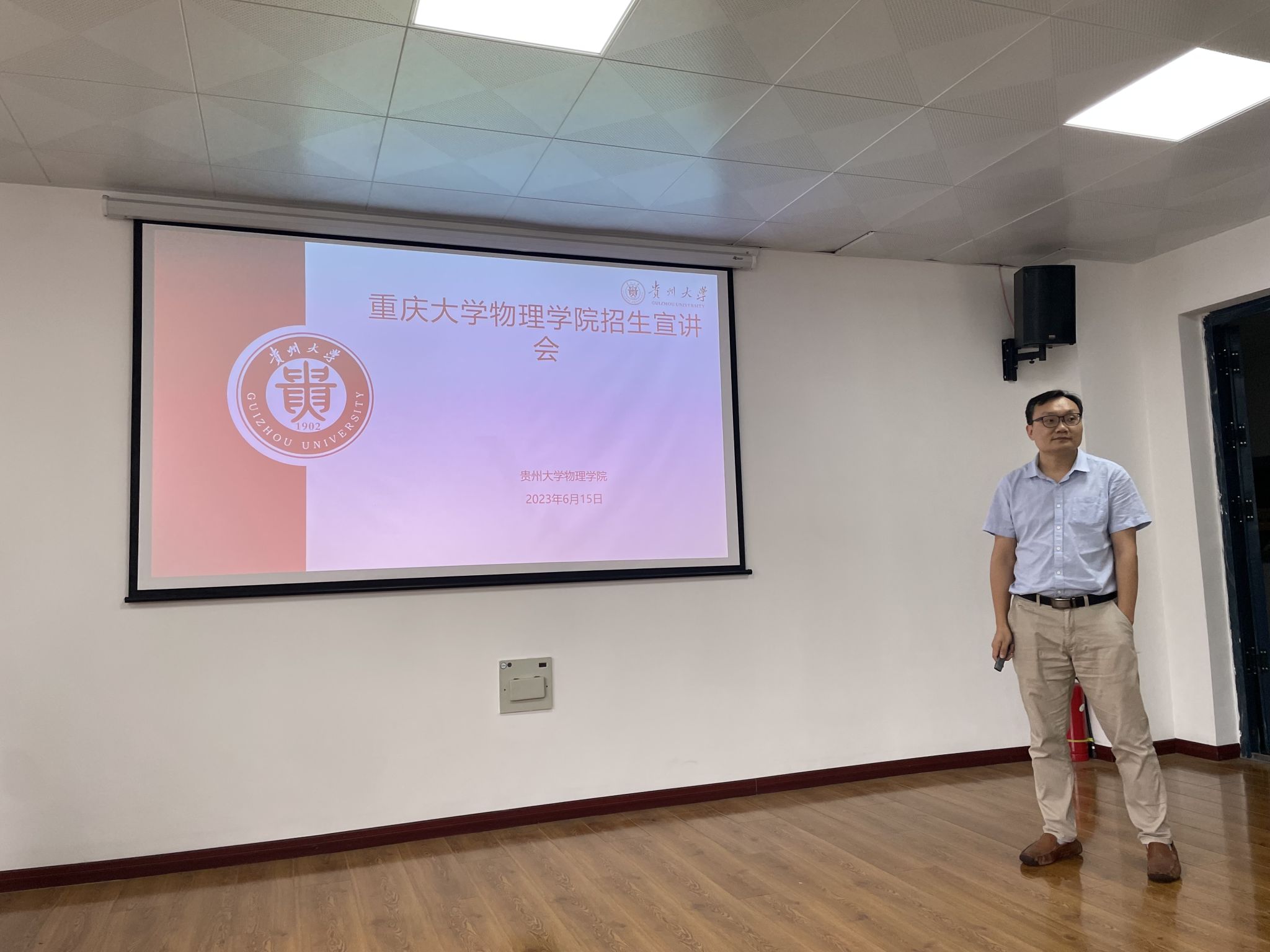 为加强研究生招生宣传力度,提升研究生生源质量,2023年6月15日-16日,我院主管研究生教育的副院长胡自翔教授,物理系主任秦思学教授和西南理论物理中心方向负责人李昕教授赴贵州大学和贵州民族大学进行了两场招生宣传。宣讲会由贵州大学国产偷拍