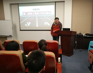 与中科院高能所共同承办,目的在于培养对学术科研有兴趣的同学。李昕老师简要介绍了英才班并对英才班同学提出了一些要求,同时也让大家对中科院高能所有了深入的了解,介绍了英才班的奖励制度,如:奖学金、学术科研等,以及英才班成立后的主要活动。本次仪式后将由选举推荐的形式推选班长。