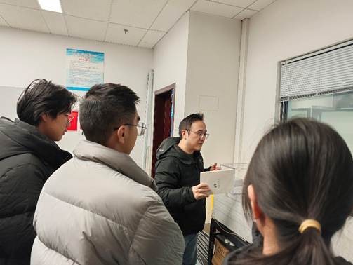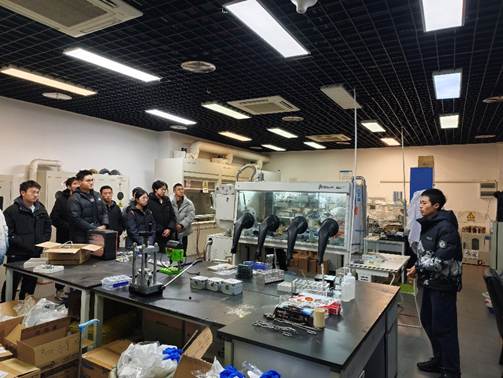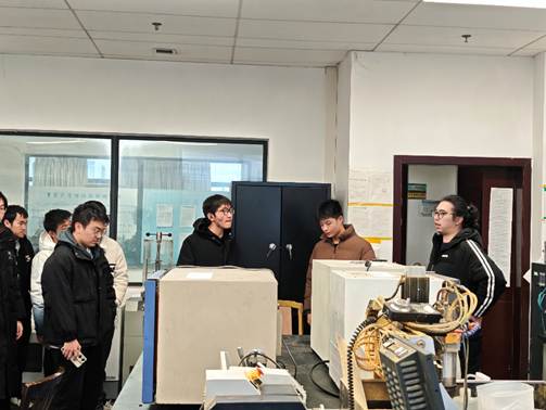 随后,参观队伍来到卢旭老师课题组热电物理实验室。高晟浩同学围绕热电能源转化材料与器件的研究思路进行讲解,重点说明了热电测试与材料性能评估的基本流程,同时提醒同学们关注实验过程中常用的关键指标与数据要点。