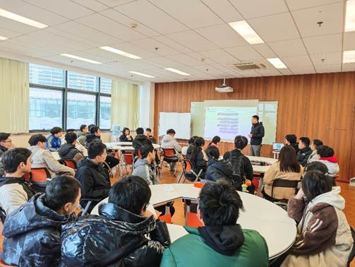 团委书记杨森林老师围绕学院总体情况作介绍,内容涵盖学院总览、学科平台与科研平台、专业方向与科研概况及特色研究等,并就同学们关心的培养路径、科研训练与就业方向等问题进行了答疑交流。
