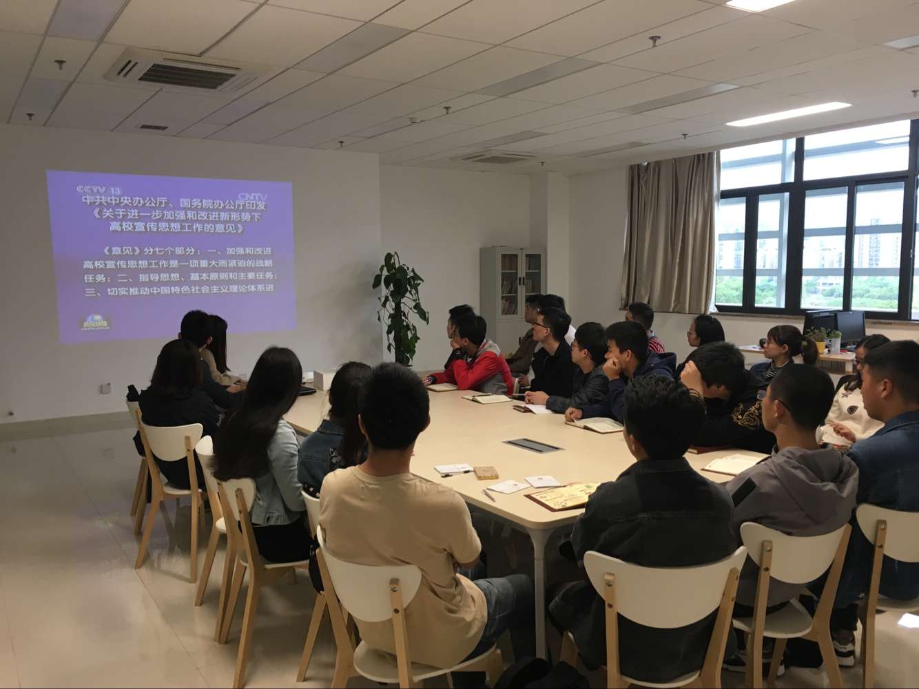 本科第一党支部在理科楼LE601组织支部党员学习中央办公厅、国务院办公厅印发的《关于进一步加强和改进新形势下高校宣传思想工作的意见》并观看中央宣传部、中央组织部、教育部负责人就《关于加强和改进新形势下高校思想政治工作的意见》答记者问的相关视频资料。