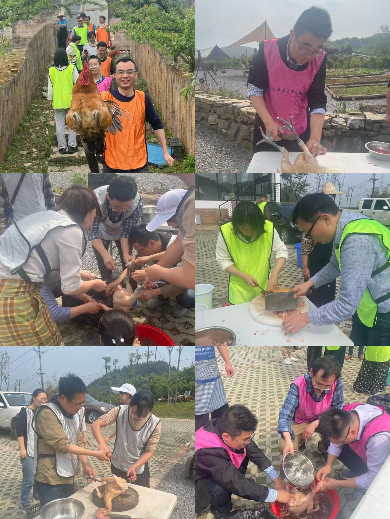 烹饪完毕后,专业厨师对各组的柴火鸡进行了品评。老师们围着地锅吃着肉,聊着在工作和生活中遇到的趣事和心事。饭后大家相约一起爬山、散步、赏花。现场氛围热闹非凡、其乐融融,虽不是家人,却更胜似家人。