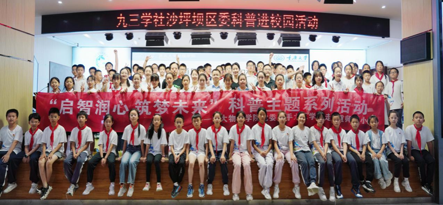 副院长王锐、九三学社沙坪坝区委专职干部刘婷婷以及两校近500名师生参加了此次活动。活动中,我院30余名师生党员组成了科普先锋队,为重师附小的同学们开展了多主题、多形式,各具特色、生动而有深度的科普系列活动。
