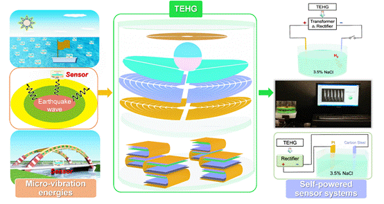 图2. 全方位微振动能量的收集装置在自供电多功能系统中的应用
