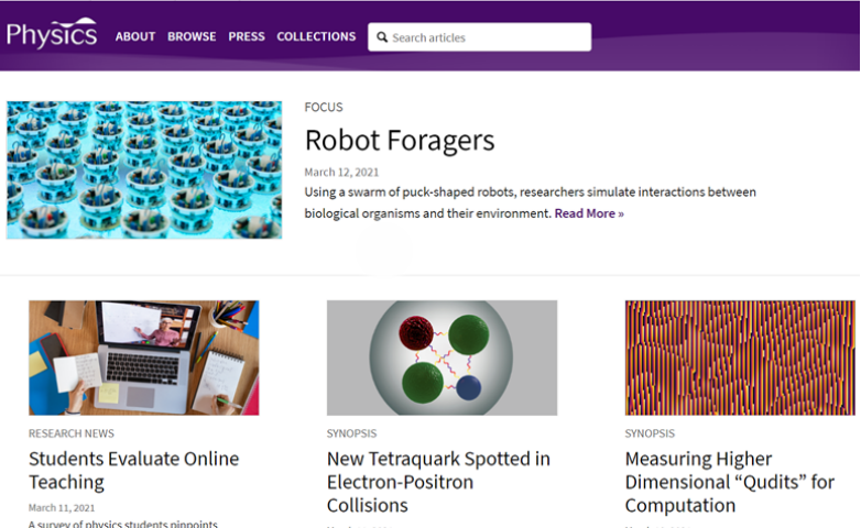 APS(美国物理学会)《物理》杂志在其官方网站国产偷拍置顶报道了该工作//physics.aps.org/articles/v14/38 并称赞这一新的研究可以帮助揭示生态系统中隐藏的复杂性和未探索的现象,为实验室中演示集群涌现行为提供了一条新的途径。该研究工具可以解决在实际场景中或计算机模拟中难以探索的问题,也可能会在许多受生物启发或其他因素影响的活性物质问题中被证明是非常有用的。