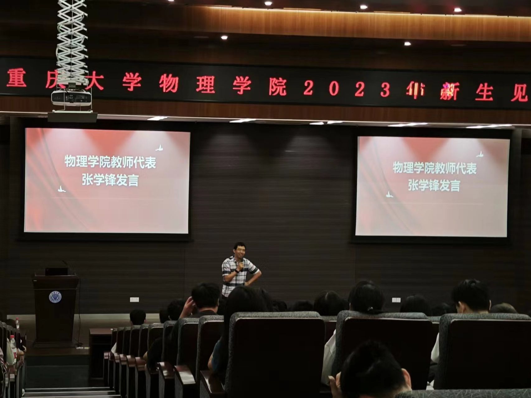 的院史院情与学科发展脉络等整体情况。他详细阐述了学院在高水平师资、学术氛围、学科平台所取得的飞跃式进展。接着,他细致讲解了学院专业特色研究方向,包括了粒子物理理论、引力和宇宙学、强关联量子系统、计算凝聚态物理、新能源及智能材料、光电材料与器件、超导材料及物理、软凝聚态物理生物物理8个方向。最后,吴兴刚寄语新生要树立自己的志向,担当起强国建设、民族复兴的使命,实现共同的梦想。
