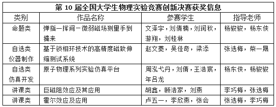 全国大学生物理实验竞赛(创新)始于2010年,于2020年入选全国普通高校大学生竞赛排行榜,是进入该排行榜的唯一物理类竞赛,在大学生课外科技竞赛领域具有广泛的影响力。目前,比赛每年举办一次,采用开放制,参赛对象为教育部批准设立的各类普通高等学校在册大学生。竞赛共设置命题类作品、自选类作品和物理实验讲课类三个比赛类别。各赛道按照校级选拔赛、全国初赛和全国决赛三级赛事进行组织。自竞赛创办以来,已经吸引了众多高校物理专业学生的积极参与,成为展示大学生物理实验创新成果的重要平台。