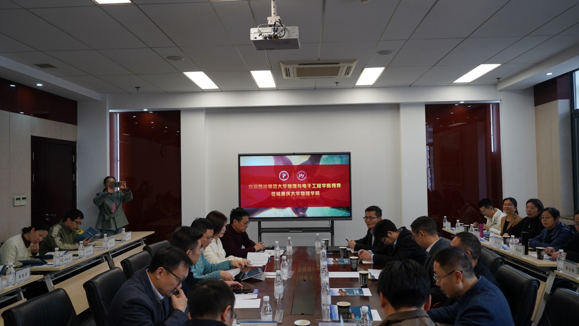 的大力支持表示感谢,并提出以高水平科研合作为突破点,携手申报国家重大科研项目、共育国家级高层次人才的愿景,以期全面提升四川师范大学物理与电子工程学院的师资队伍实力与科研创新能力。胡自翔强调了双方可以在高水平科研平台建设、拔尖创新人才培养、高水平师资队伍建设等方面开展全面合作,互学互鉴,共谋发展。