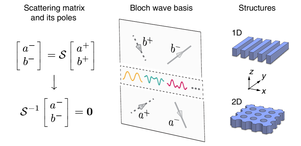 能带论是理解波在周期介质中传播行为的基本理论。然而,传统的能带论未考虑辐射泄露,因此在光子晶体平板等开放体系中,很多问题传统的能带论不能处理,使得相关物理机制也欠明晰。近年来研究者感兴趣的一系列重要现象——如连续谱中的束缚态(BIC),奇异点(Exceptional Point, EP)以及偏振奇点等——通常依赖数值模拟或构建有效的非厄米哈密顿量进行解释。然而,这类方法或者数值计算量大,或者基于数值结果进行拟合而缺乏预测能力。同时,需要人为地设定初始共振模式,常会面临模式选择的不完备性。
