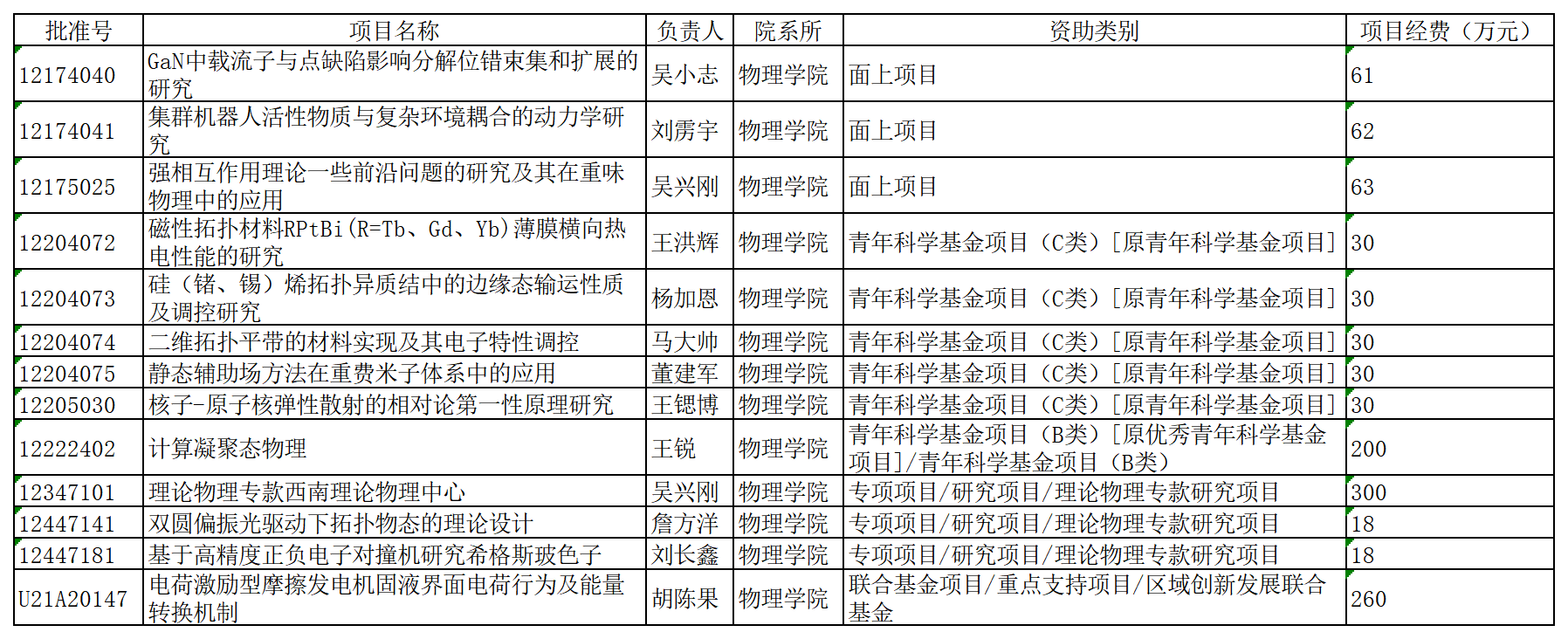 按照国家自然科学基金委和校科发院的要求,现对2025年度本学院结题的13项国家自然科学基金项目结题材料予以公示(公示材料见附件),公示期为5个工作日。